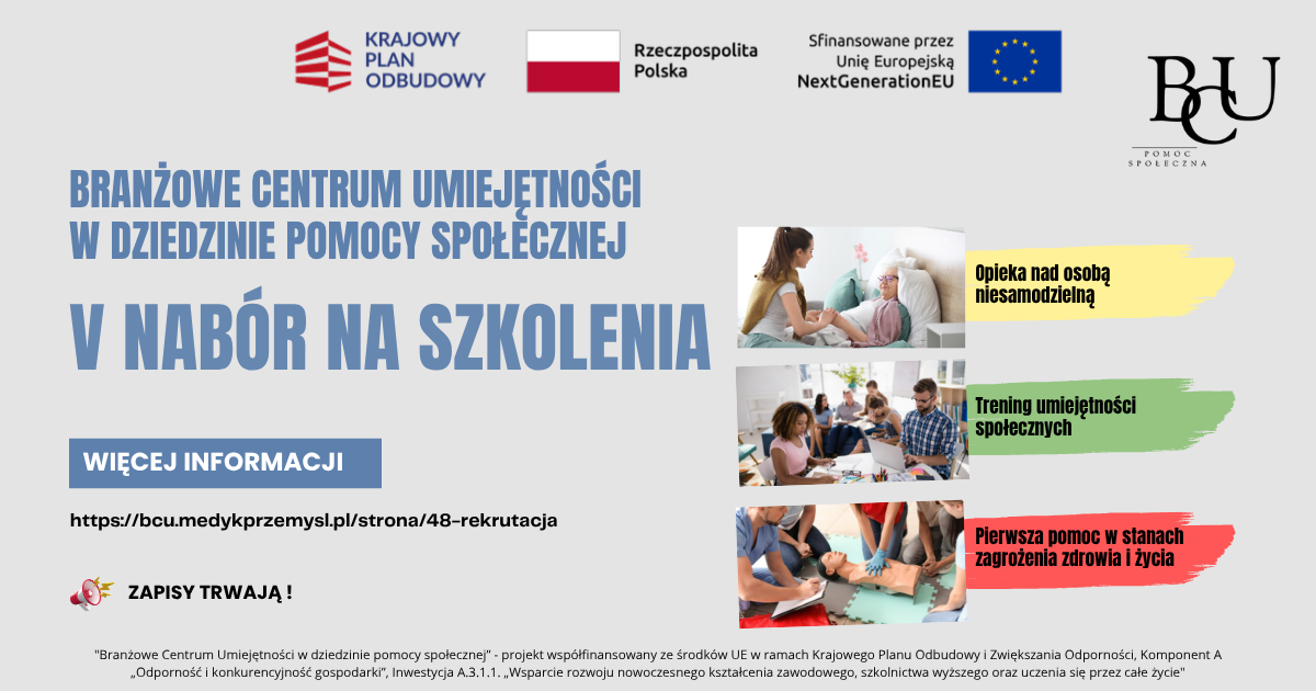 Branżowe Centrum Umiejętności w dziedzinie pomocy społecznej, działające od 21 października 2024 r., jest placówką edukacyjną pełniącą rolę ośrodka szkoleniowego,...