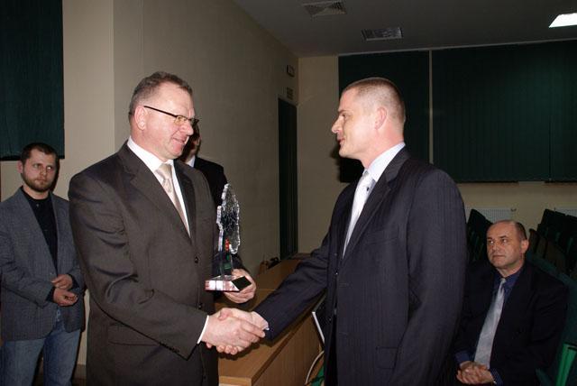 Starosta wręcza nagrode